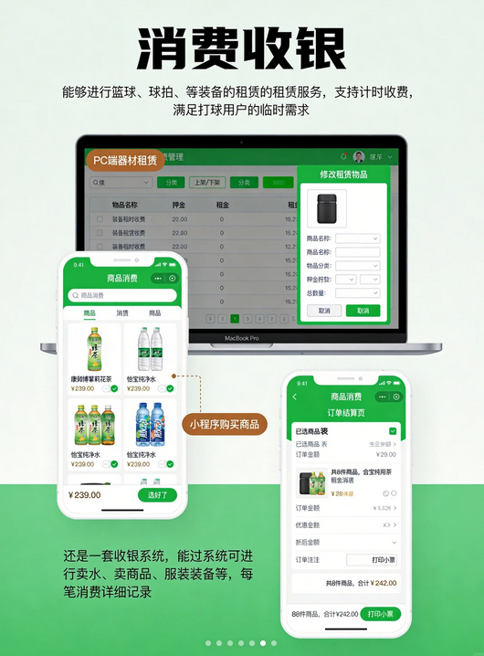 •微信小程序:学员订场、支付、评价全流程数据。